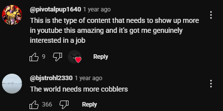 By setting up a phone (most likely on a tripod) and hitting record while he fixes shoes, he’s built a YouTube audience of over 430,000 subscribers. In less than a year and a half of posting.
